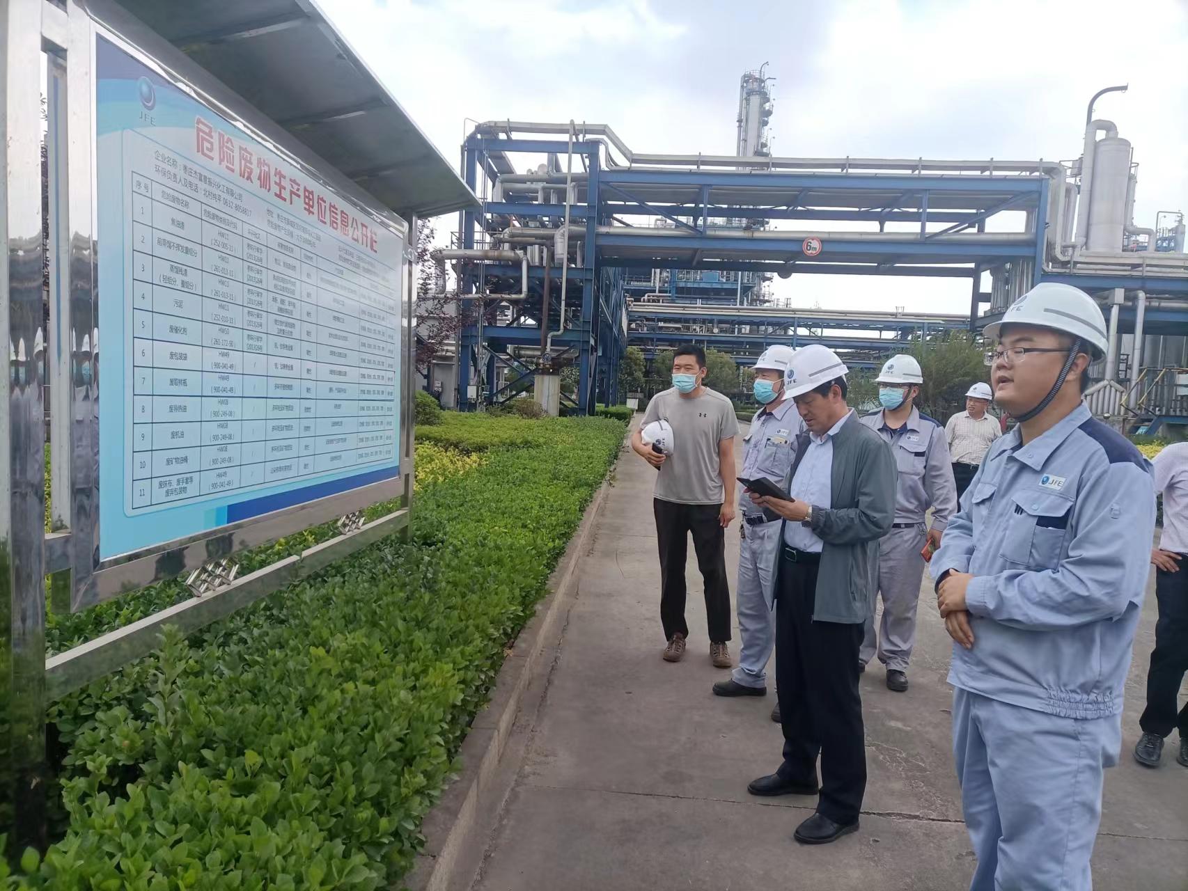 6月22日上午,山東省固廢和?;肺鄯乐?心副主任呂瑞學帶領省生 態(tài)環(huán)境廳危險廢物幫扶組一行到棗莊杰富意公司檢查指導危險廢物管理工作。棗莊市生 態(tài)環(huán)境局固廢土壤科科長高虎、市生 態(tài)環(huán)境局薛城分局副局長郭濤,公司安 全總監(jiān)楊建杰等陪同。