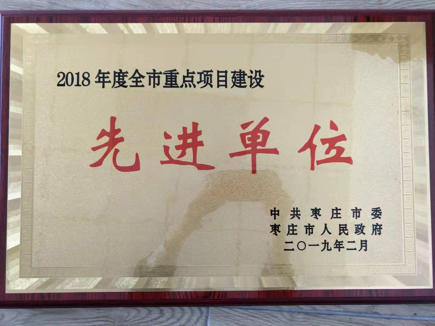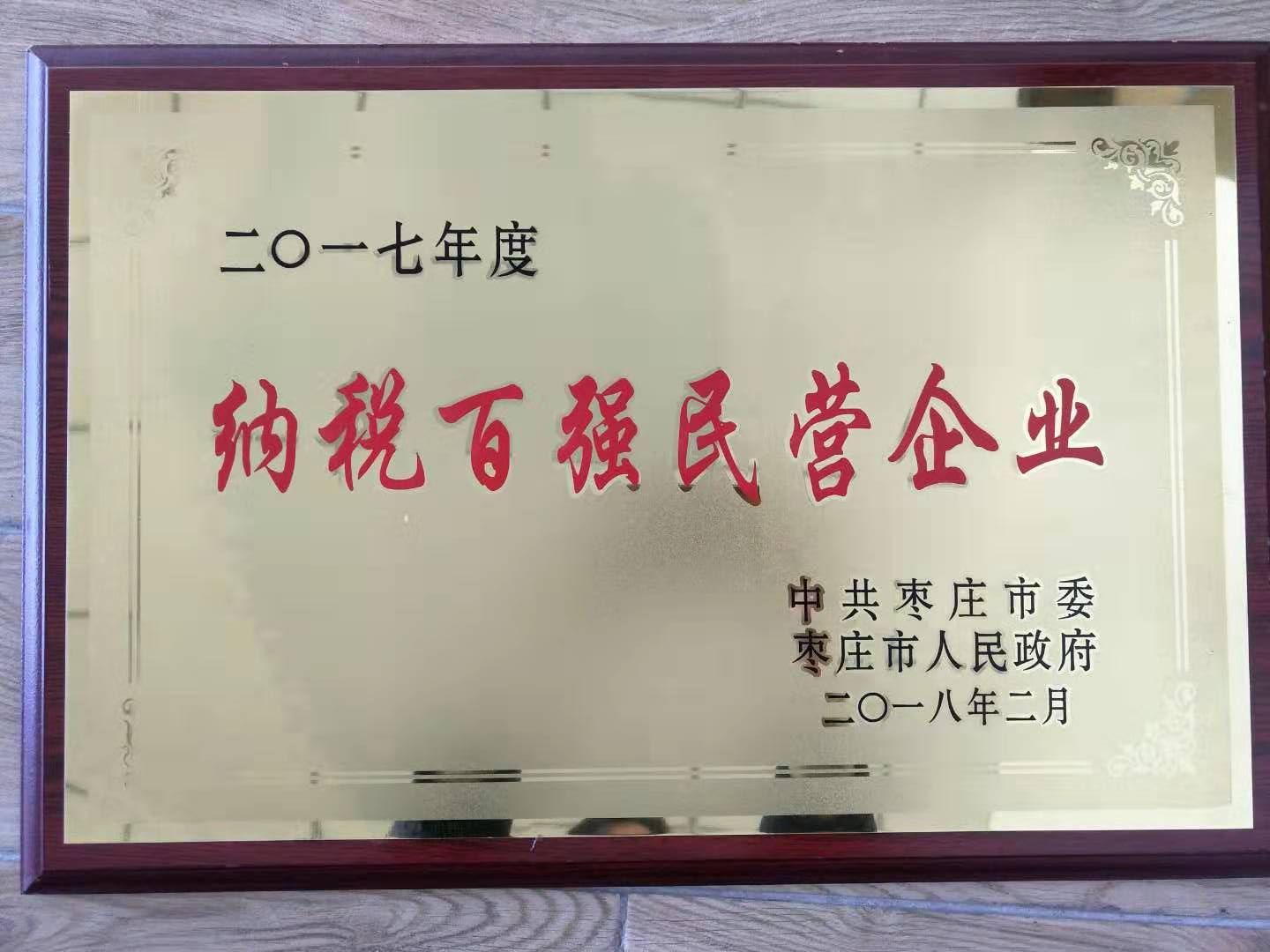 公司2017年度棗莊市”十大節(jié)水型單位“稱號牌匾
